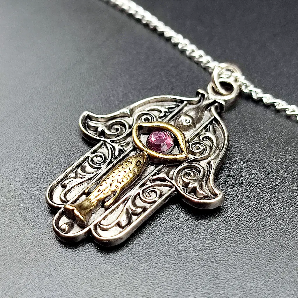 Este amuleto reúne tres símbolos de poder en una sola pieza: