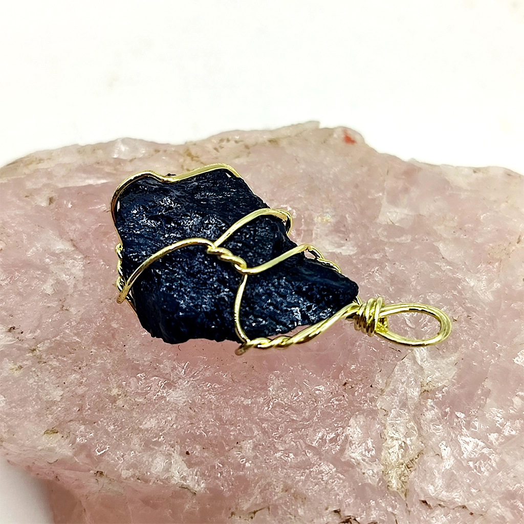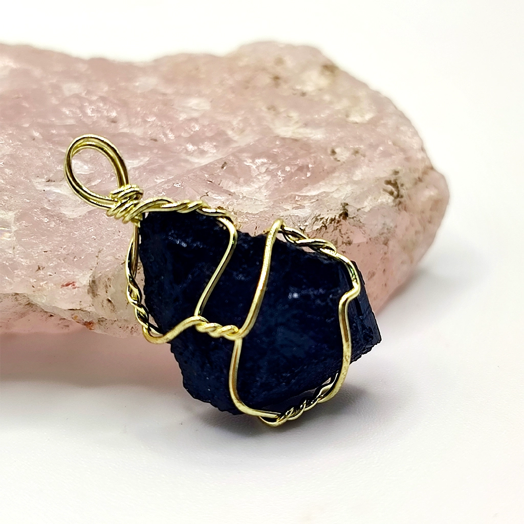 Envuelta cuidadosamente en alambre dorado, mantiene su esencia salvaje y auténtica, convirtiéndose en un amuleto ideal para el día a día.