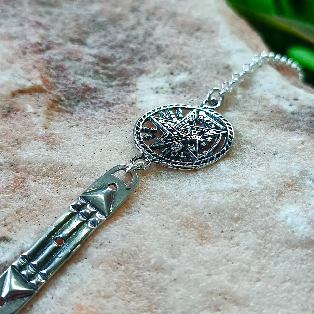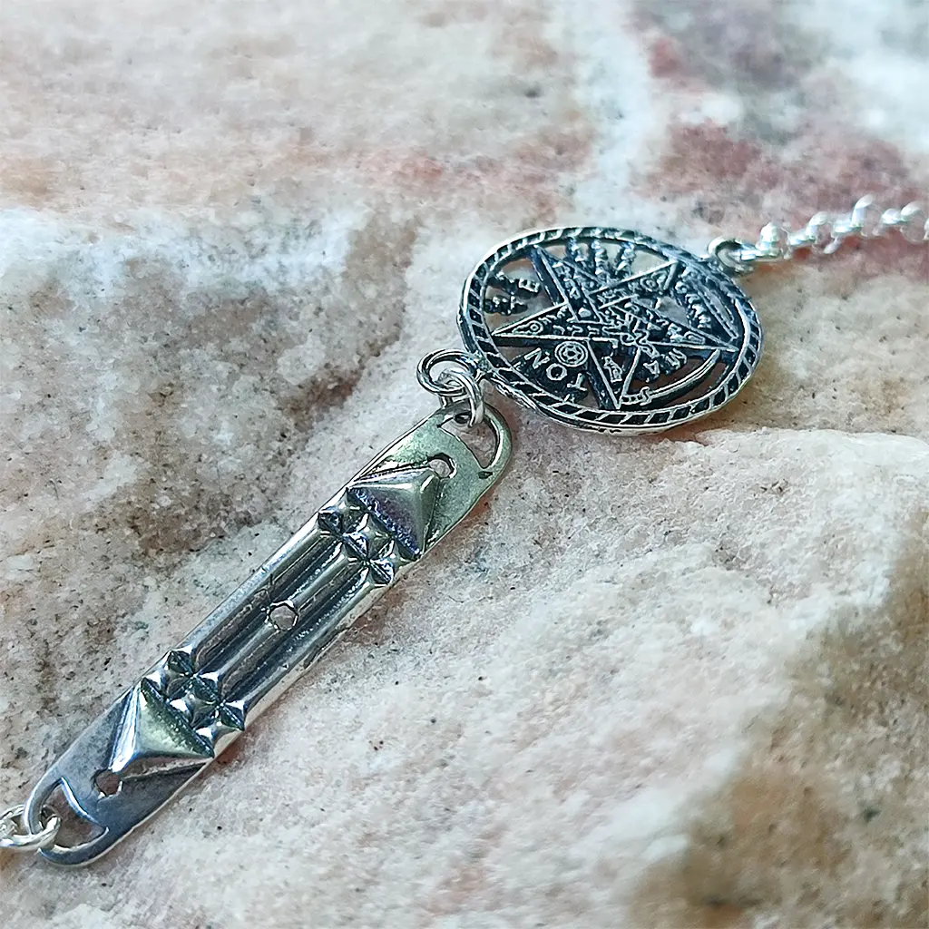 Símbolo esotérico protector que representa el poder del nombre divino y el dominio de los elementos. Tradicionalmente se usa como talismán contra energías negativas.