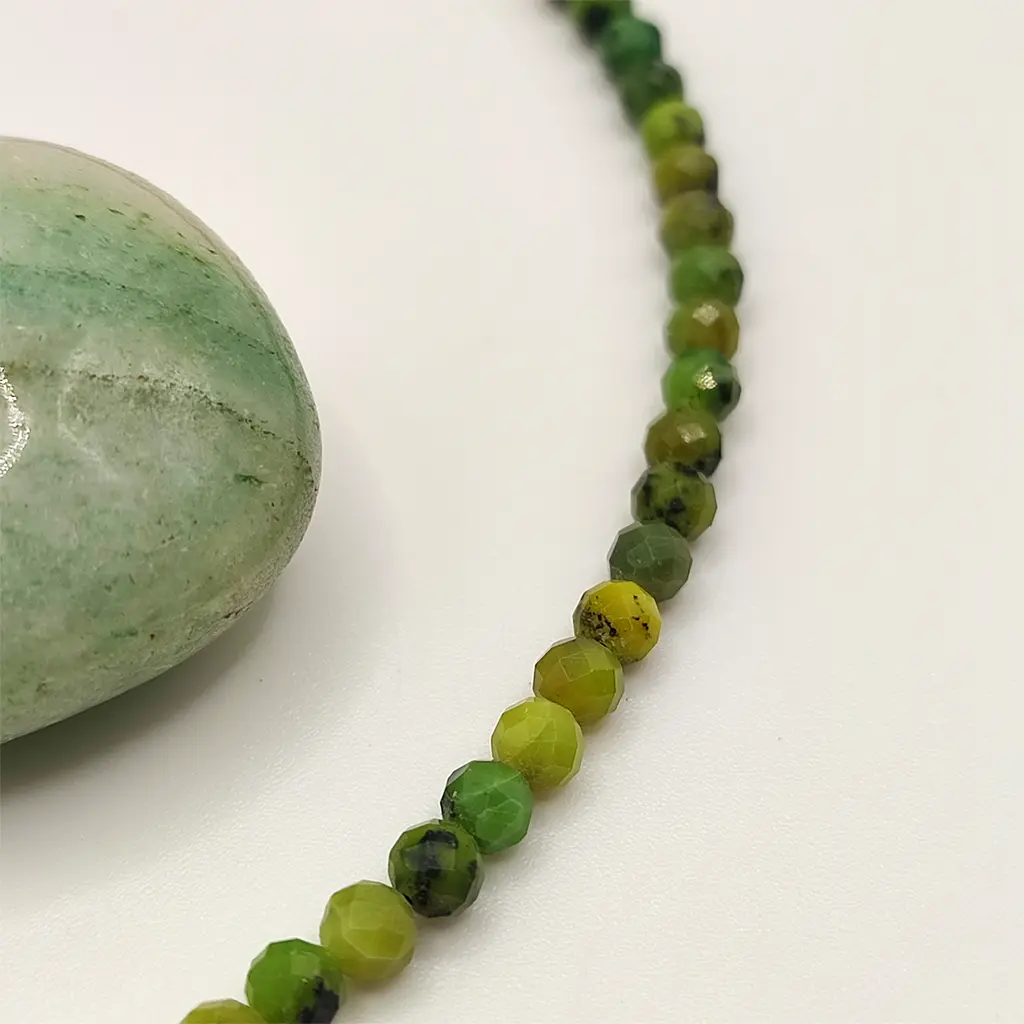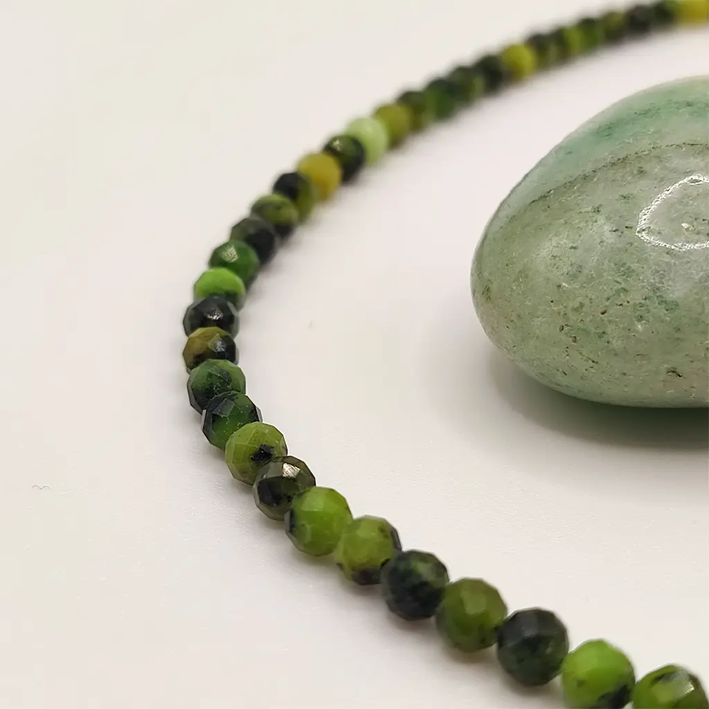 Collar de jade natural de Canadá con cuentas facetadas de 4 mm. Una joya fresca y vibrante que armoniza cuerpo, mente y espíritu.