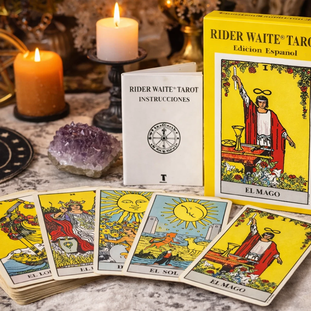 El Tarot Rider-Waite es uno de los mazos más conocidos y utilizados a nivel mundial, creado por Arthur Edward Waite e ilustrado por Pamela Colman Smith en 1909. Esta edición, publicada por US Games, está completamente en español y mantiene la esencia vibrante y simbólica que caracteriza al mazo original.