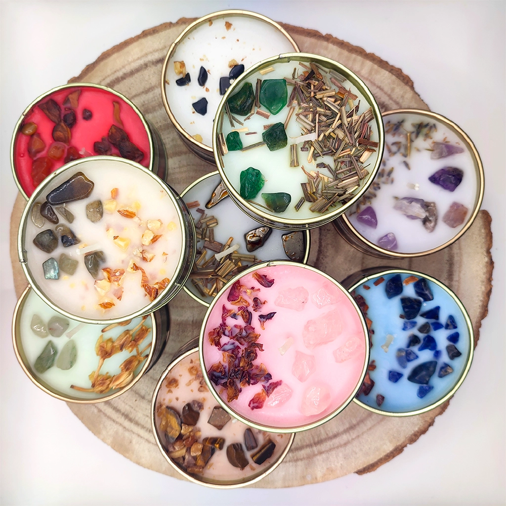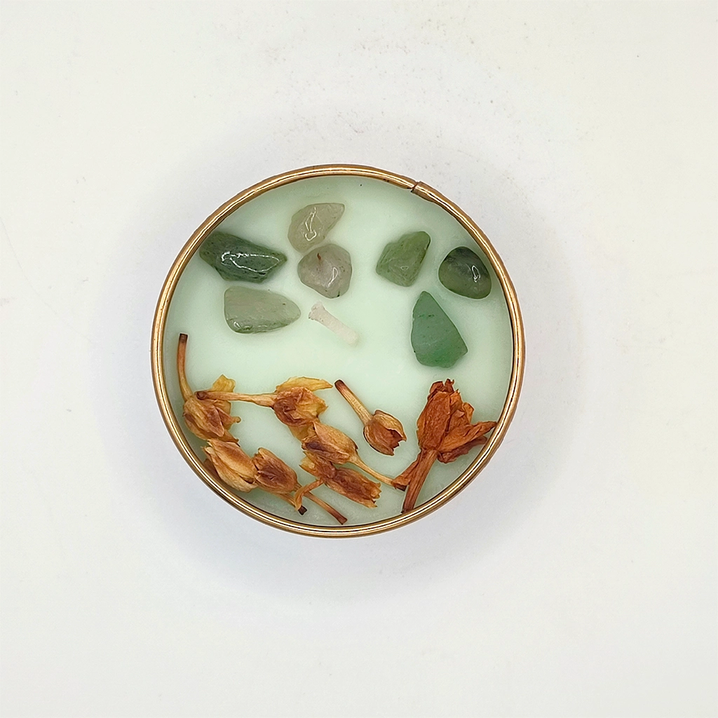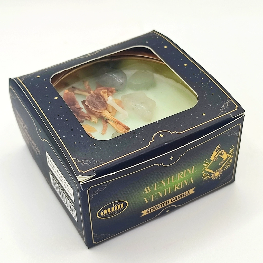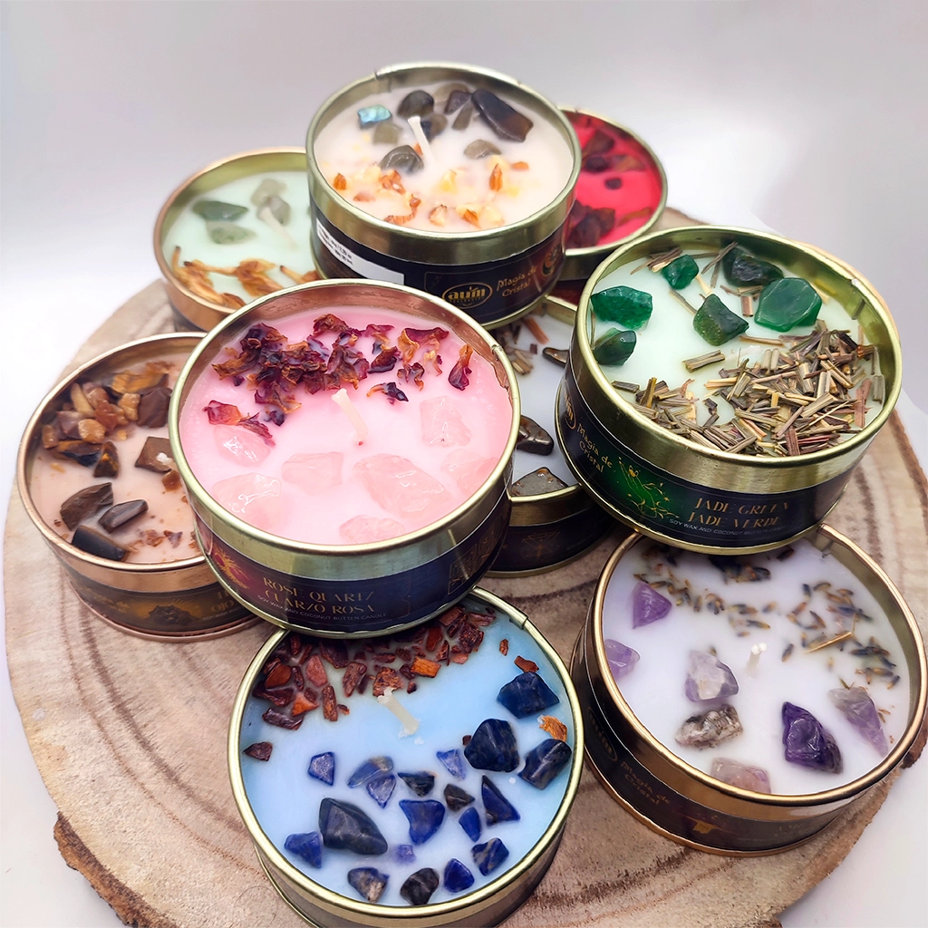 La vela Magia de Cristal Aventurina combina la calidez de la cera aromática con la energía natural de la aventurina verde, una piedra conocida en el mundo espiritual por su relación con la suerte, la prosperidad y las nuevas oportunidades.