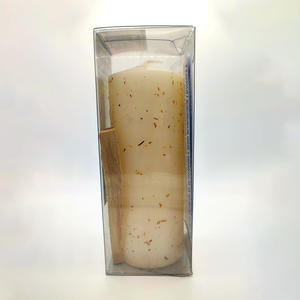 La cera clara actúa como canal de purificación, claridad y serenidad, mientras que las hierbas ritualizadas ayudan a descargar tensiones emocionales y mentales.