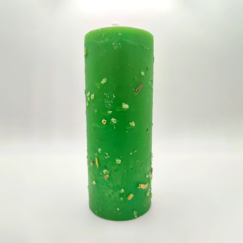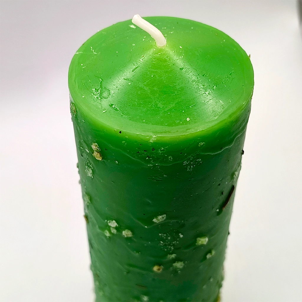 El color verde trabaja la regeneración, la protección y la restauración del equilibrio, mientras que las hierbas ritualizadas potencian el efecto de limpieza profunda y blindaje energético del espacio.