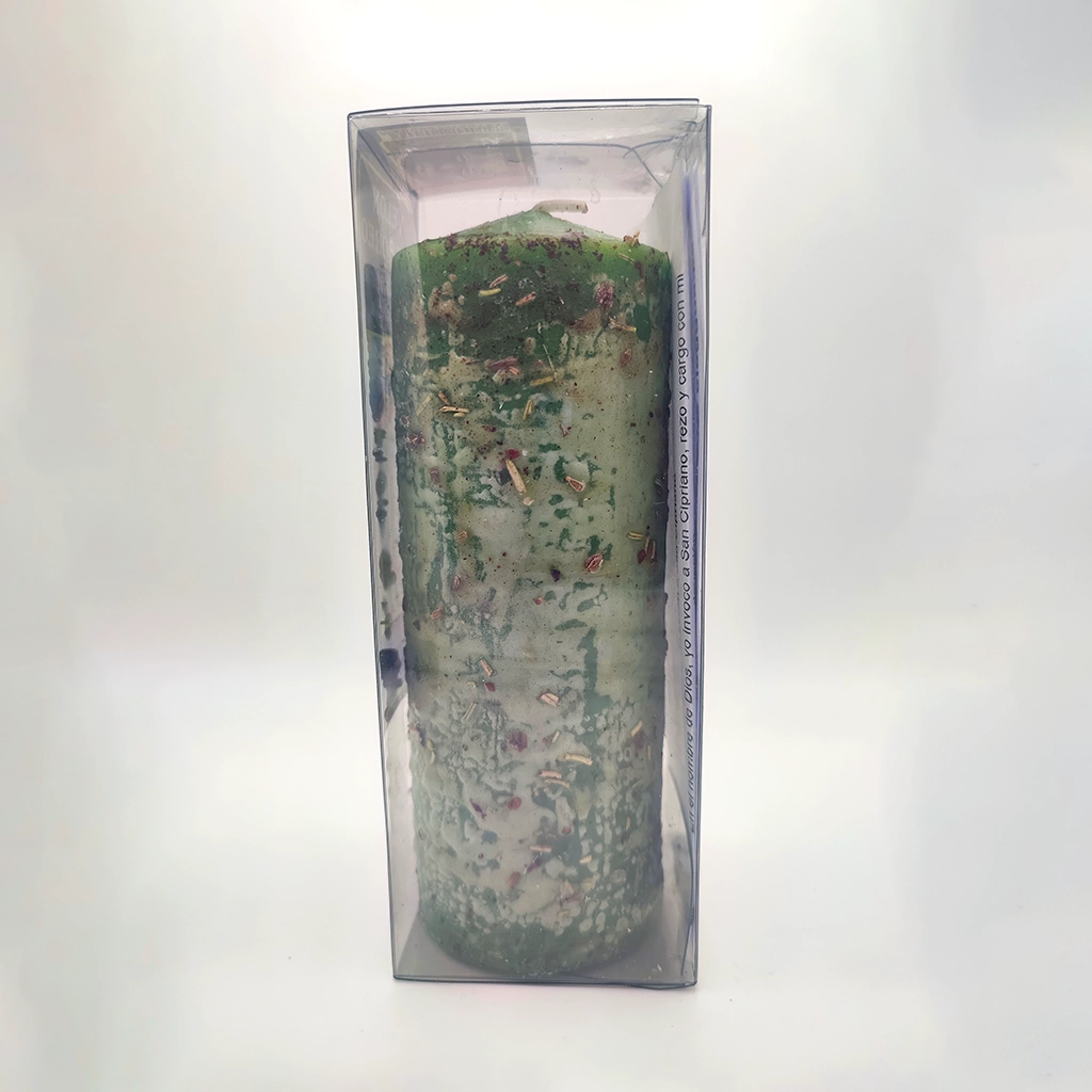 🕯️ Este velón herbóreo está consagrado a San Cipriano, protector espiritual frente a maleficios, mal de ojo, envidias y trabajos energéticos enviados con mala intención.